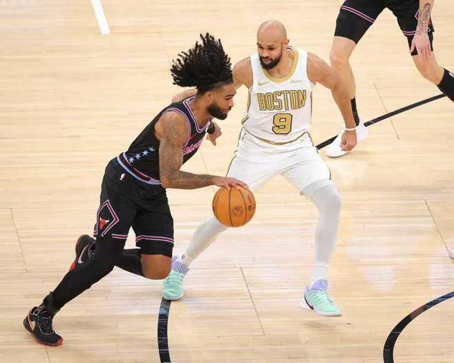 进入第四节比赛,双方继续紧咬比分缠斗,持续拉锯至凯尔特人105-106仅落后1分。布泽利斯三分命中,德里克-怀特上篮得分,武切维奇内线得分,布朗抛射命中加罚不中。史密斯扣篮不中,布朗一条龙上篮追到111-111。赫尔特还剩0.2秒精彩三分准绝杀,普里查德超远空接三分不中,最终凯尔特人惜败公牛。