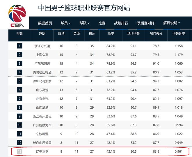 3、辽宁队真的有可能会无缘CBA季后赛,输掉这场比赛,辽宁队遭到了四连败,前19轮的成绩为8胜11负,胜率为42.1%,排在CBA积分榜第十三名。按照CBA规则,这第十三名,是无缘CBA季后赛的。因此,辽宁队在接下来,如果不能够快速走出输球的泥潭,那么,本赛季真的可能会无缘CBA季后赛。